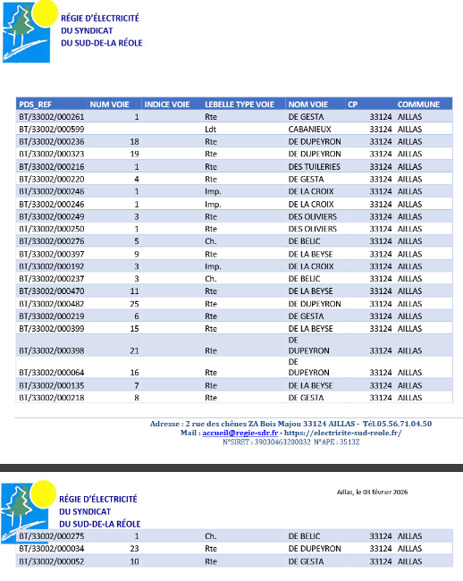 AVIS DE COUPURE ÉLECTRICITÉ JEUDI 12 FÉVRIER