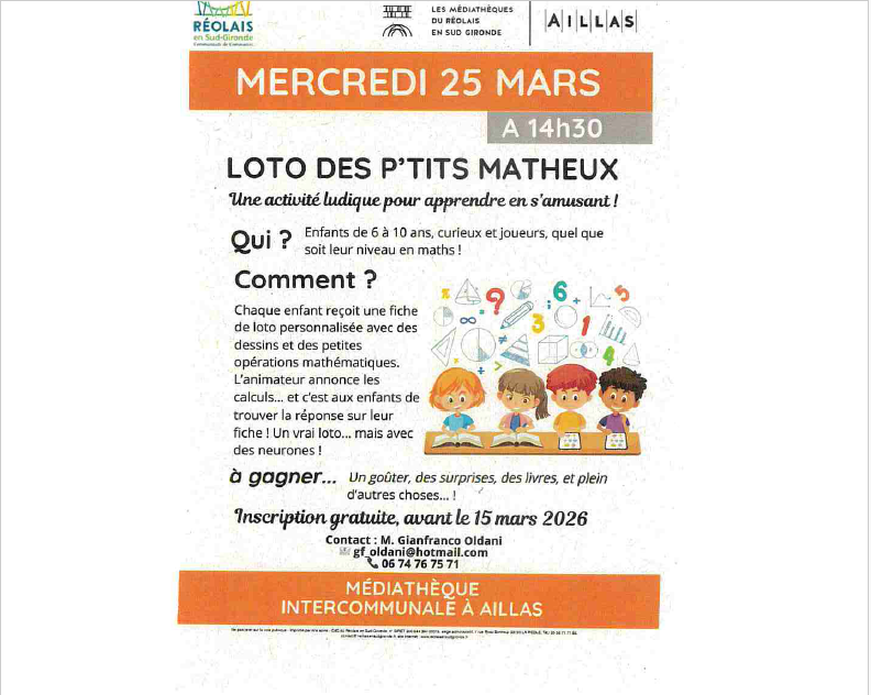 LOTO DES P’TITS MATHEUX – MÉDIATHÈQUE AILLAS